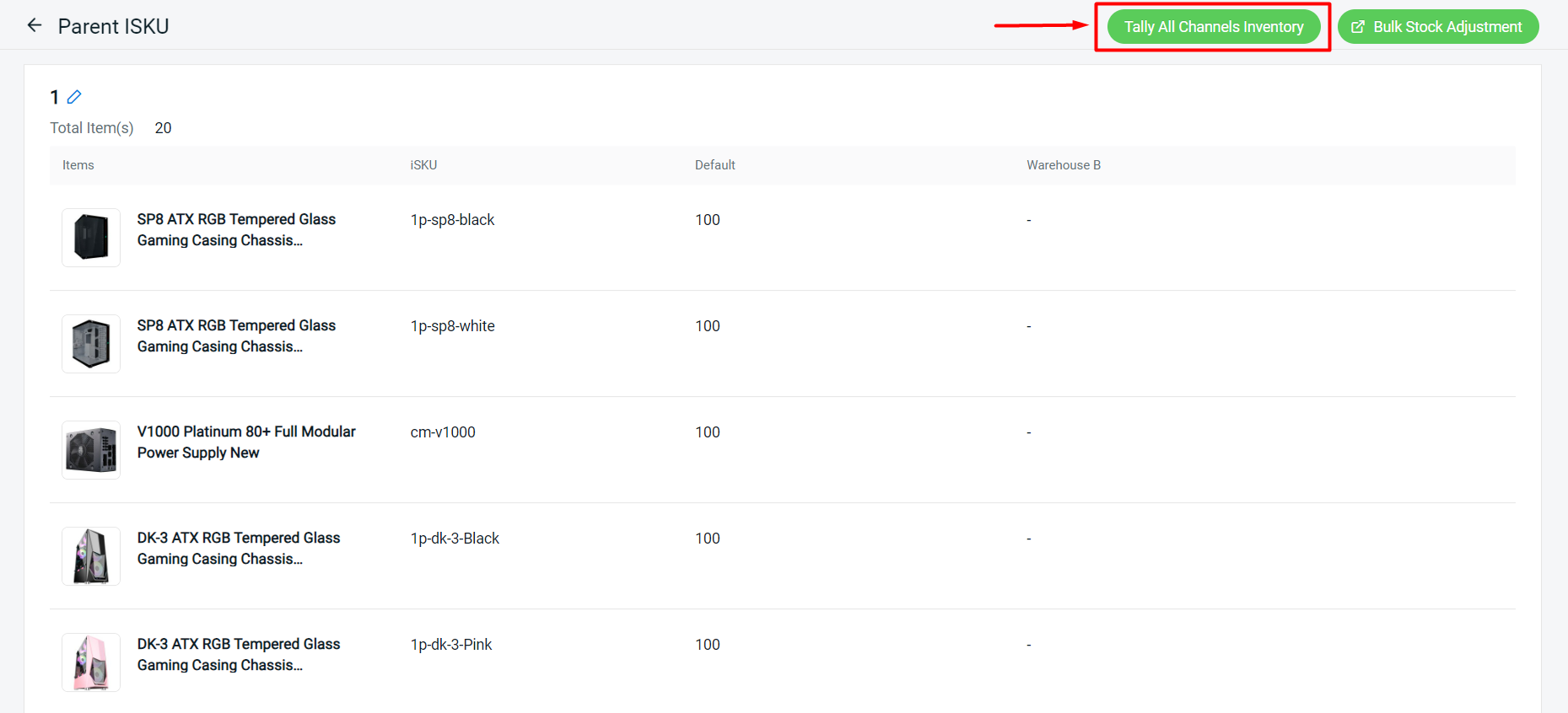 ขั้นตอนที่ 5: กด Tally All Channels Inventory > ระบบจะซิงก์สต๊อก (Sellable Stock) ของแต่ละ iSKU ไปยังสินค้าที่เชื่อมอยู่
