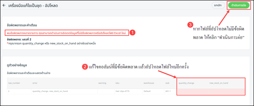 หากไฟล์ที่อัปโหลดไม่มีข้อผิดพลาด ให้คลิก “ดำเนินการต่อ”