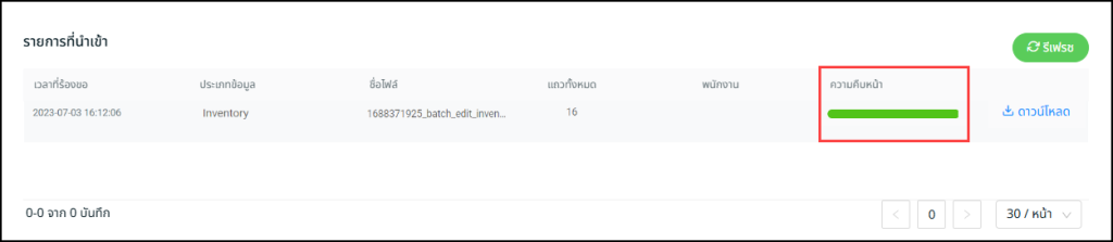 ขั้นตอนที่ 8: รีเฟรชหน้าเว็บ แล้วดูผลใน Imported List > ถ้าขึ้น Progress เป็นสีเขียวคือเรียบร้อยแล้ว