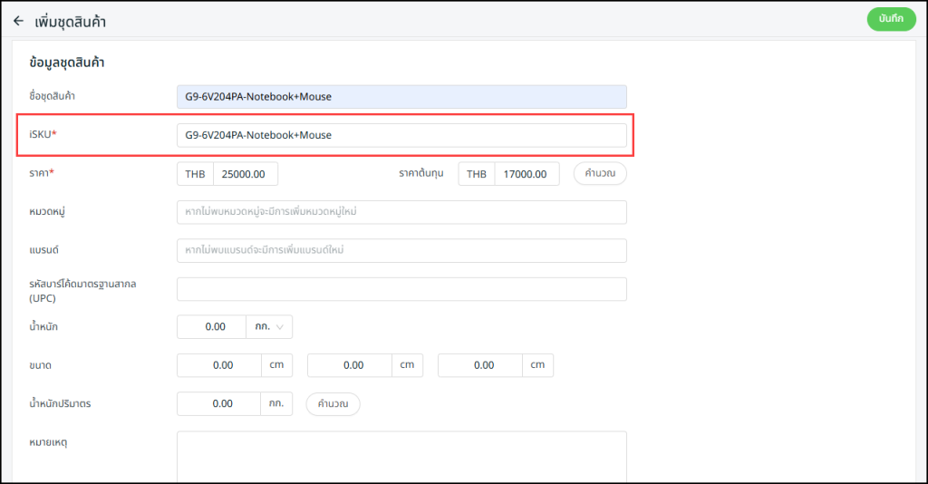 • iSKU ย่อมาจาก Inventory SKU ใช้เฉพาะในระบบ SiteGiant ERP เท่านั้น