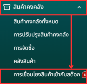 ขั้นตอนที่ 1: ไปที่เมนูด้านข้าง > สินค้าคงคลัง > การเชื่อมโยงสินค้าเข้ากับสต็อก
