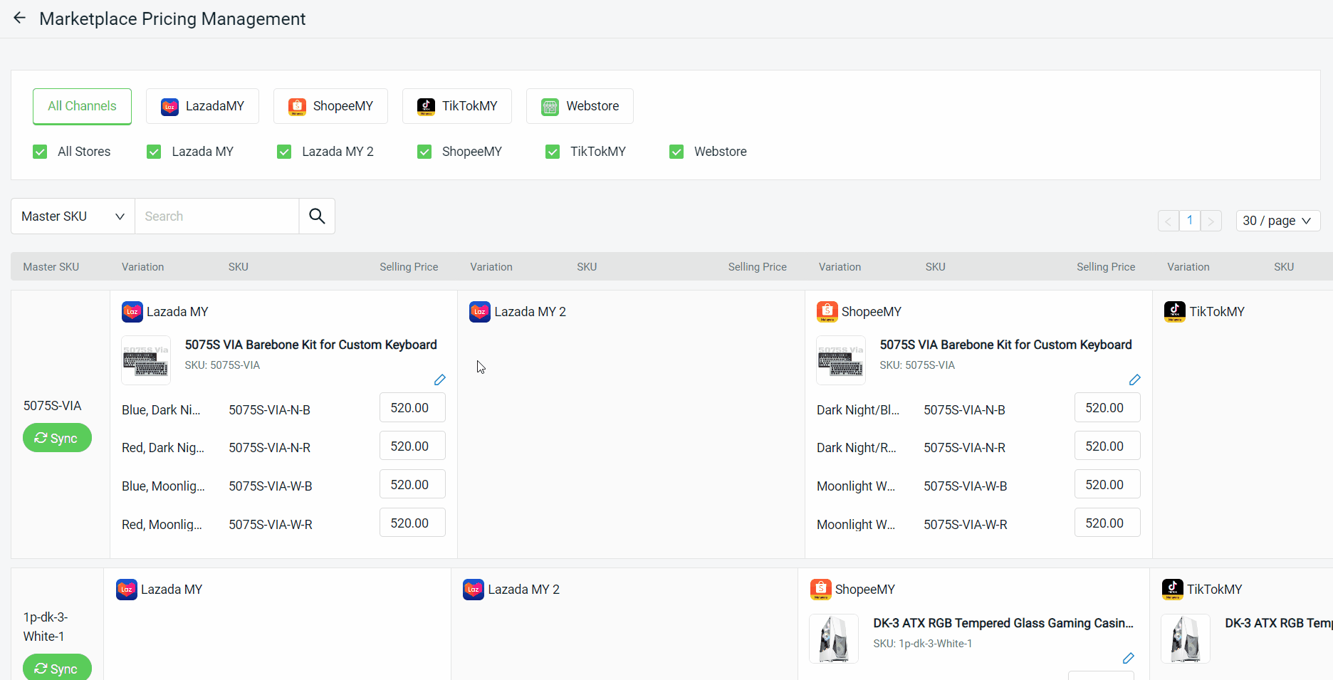 ในคู่มือนี้ คุณจะได้เรียนรู้คำศัพท์เกี่ยวกับ SKU เพิ่มอีกหนึ่งคำ นั่นคือ Master SKU โดย Master SKU ใช้สำหรับจัดกลุ่ม Parent SKU เข้าด้วยกัน ซึ่งจะช่วยให้คุณสามารถเชื่อมโยงสินค้าระหว่างมาร์เก็ตเพลสต่างๆ ภายในหน้าเดียวอย่างง่ายดาย หลังจากที่ตั้งค่า Master SKU แล้ว คุณยังสามารถใช้ฟีเจอร์การจัดการราคาสินค้าในมาร์เกตเพลส (Marketplace Pricing Management) เพื่อแก้ไขและซิงค์ราคาสินค้าไปยังมาร์เก็ตเพลสทั้งหมดเหล่านี้ได้อีกด้วย
