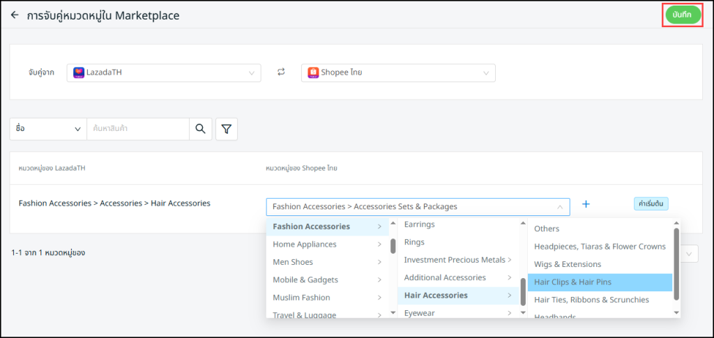 ขั้นตอนที่ 4: ตั้งค่าหมวดหมู่ที่ตรงกัน > กดบันทึก (Save)