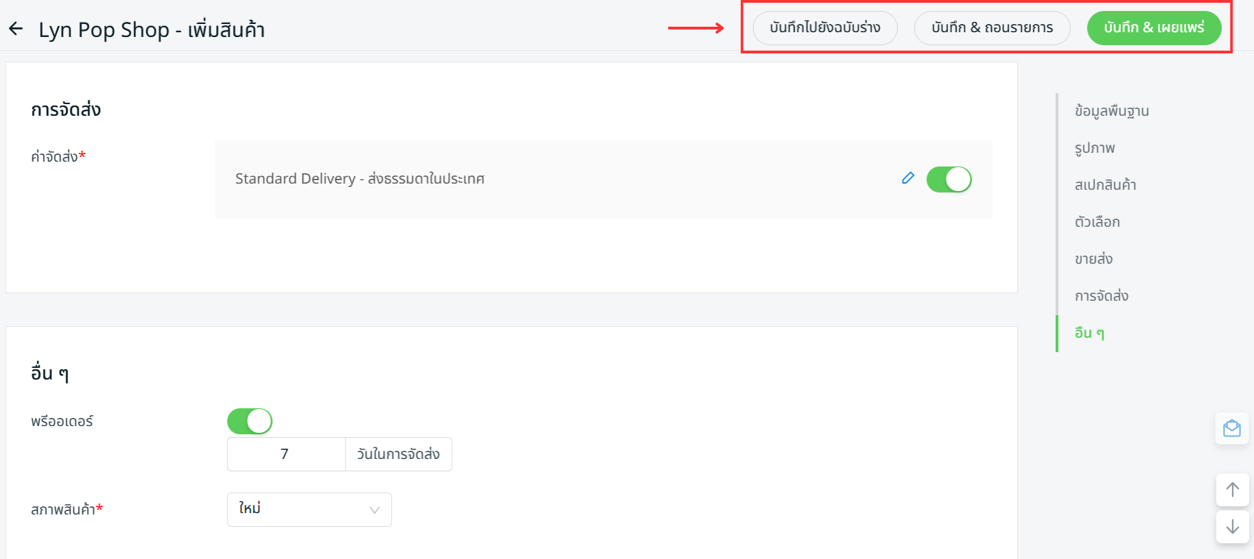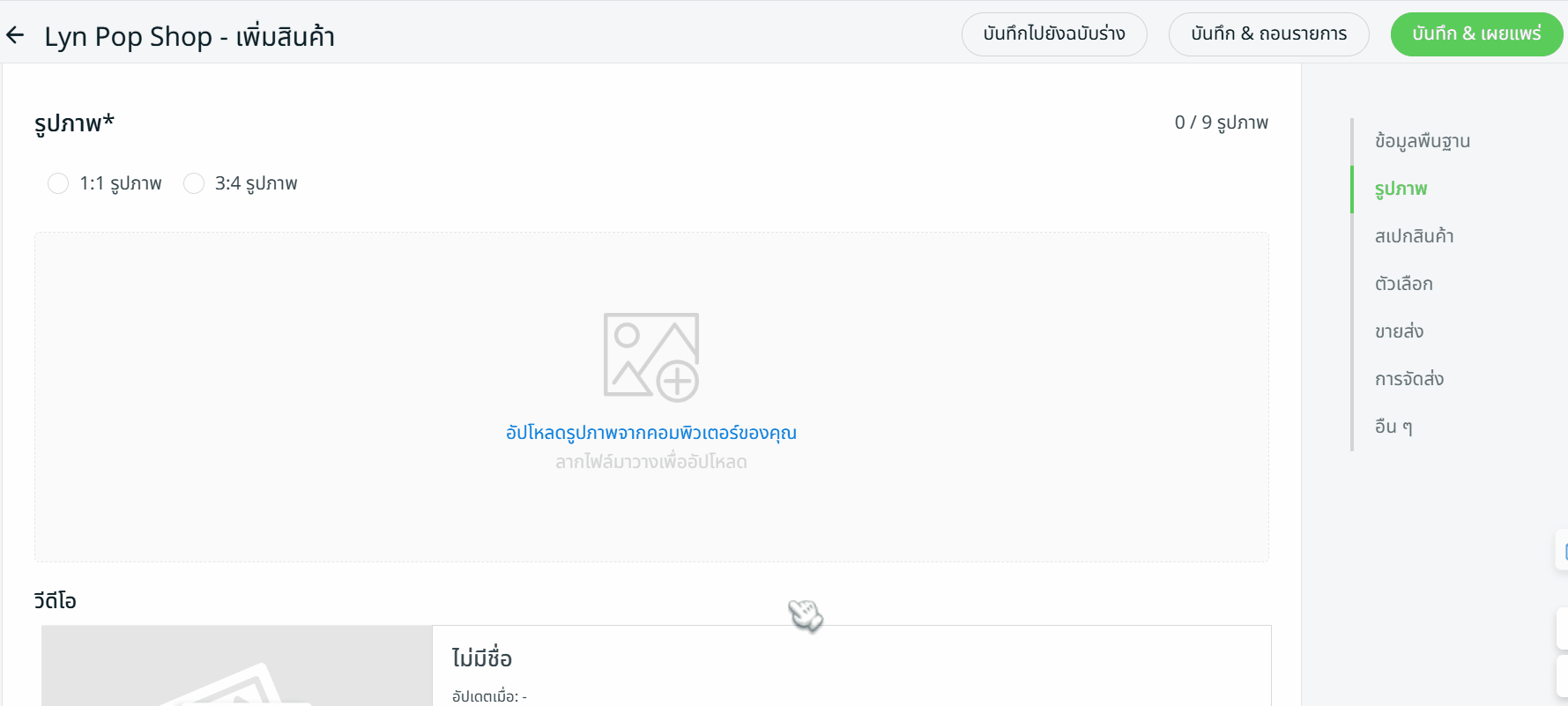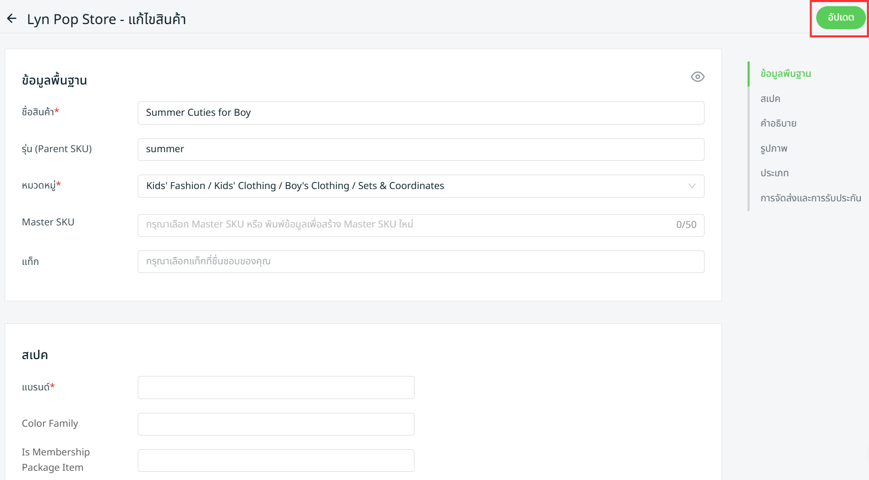 ขั้นตอนที่ 9: กรอกข้อมูลสินค้าให้ครบถ้วน > อัพเดต