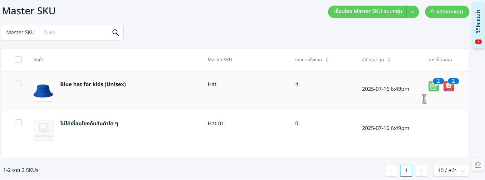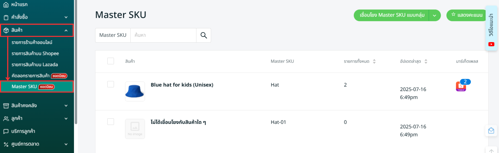 ขั้นตอนที่ 3: ไปที่เมนู สินค้า > Master SKU, Master SKU ที่ถูกสร้างขึ้นจะปรากฏที่นี่