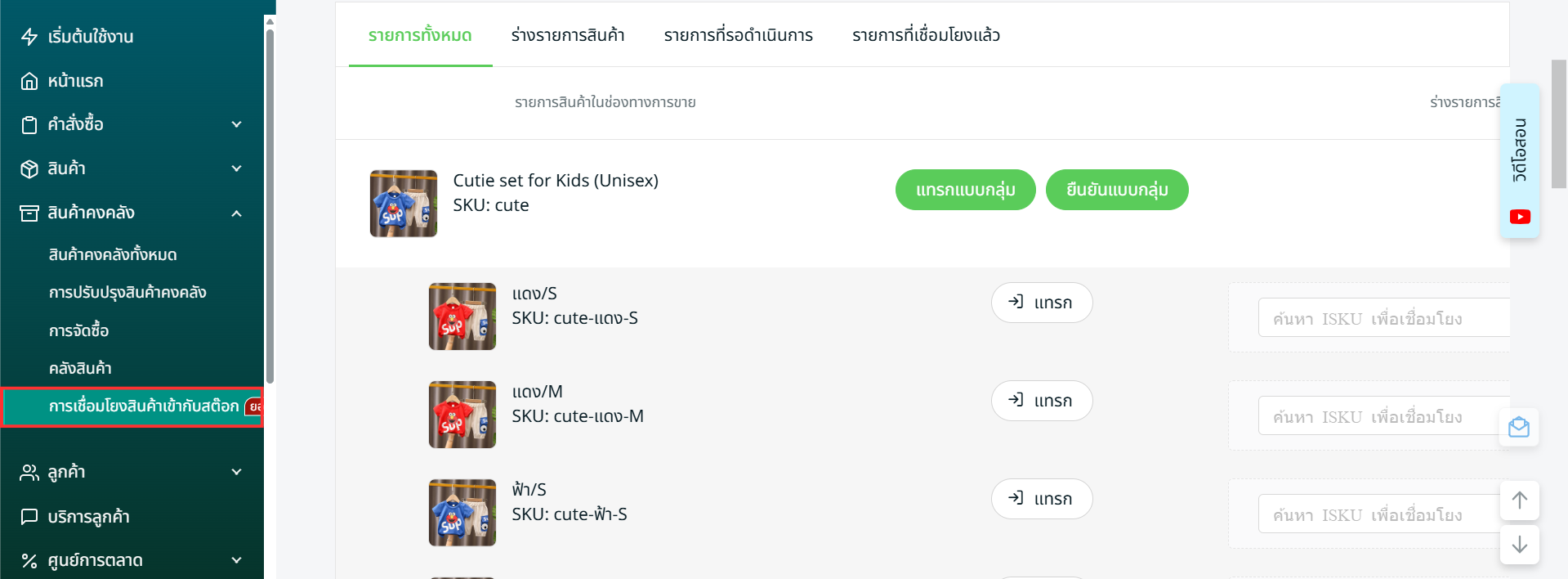ขั้นตอนที่ 13: หลังจากสร้างสินค้าชิ้นใหม่เสร็จแล้ว คุณสามารถไปที่เมนู การเชื่อมโยงสินค้าเข้ากับสต็อก (Inventory Linking) เพื่อใส่หรือเชื่อมโยง SKU ของคุณกับ iSKU ของคลังสินค้าได้